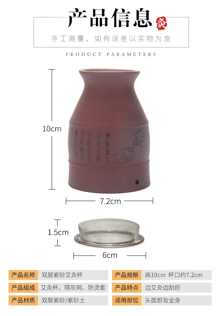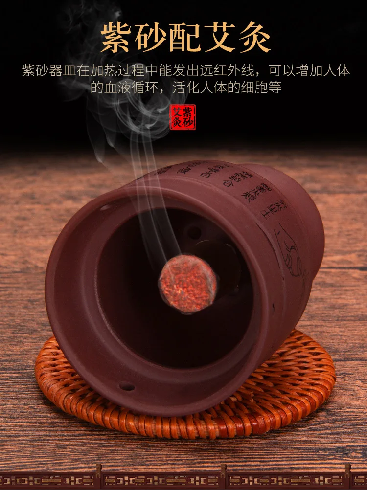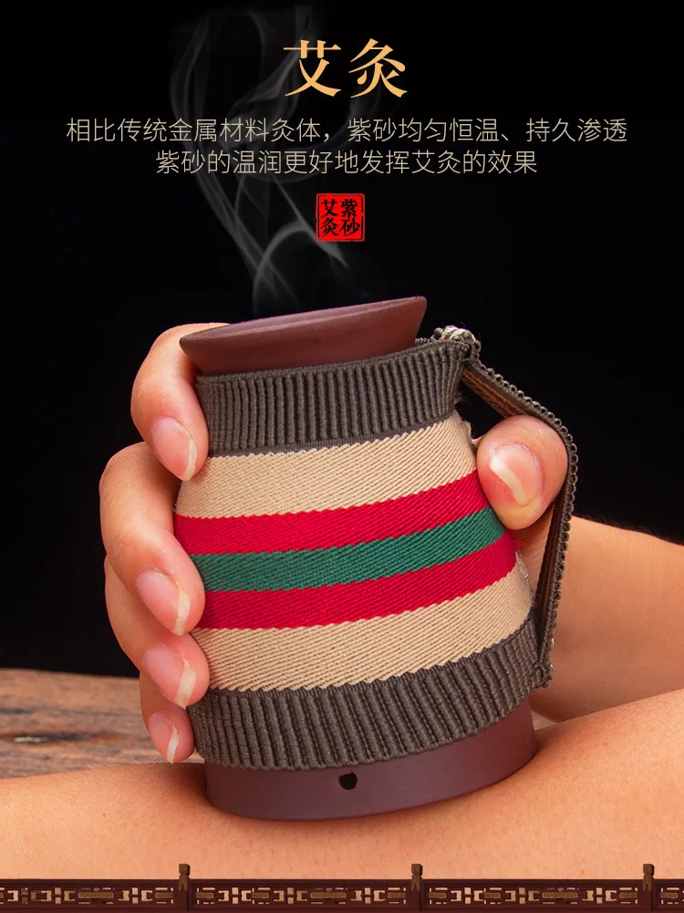 Ceramic Warm Moxibustion Jar Zisha Acupuncture Heat Therapy Body Massage Device