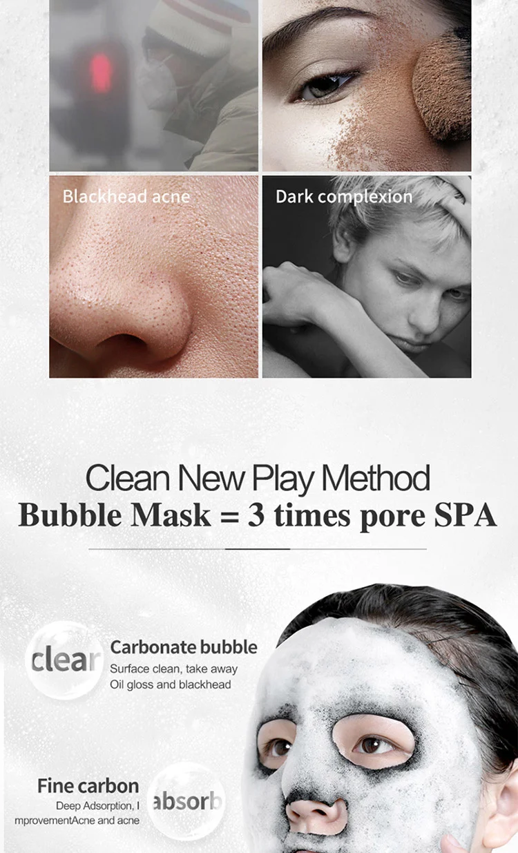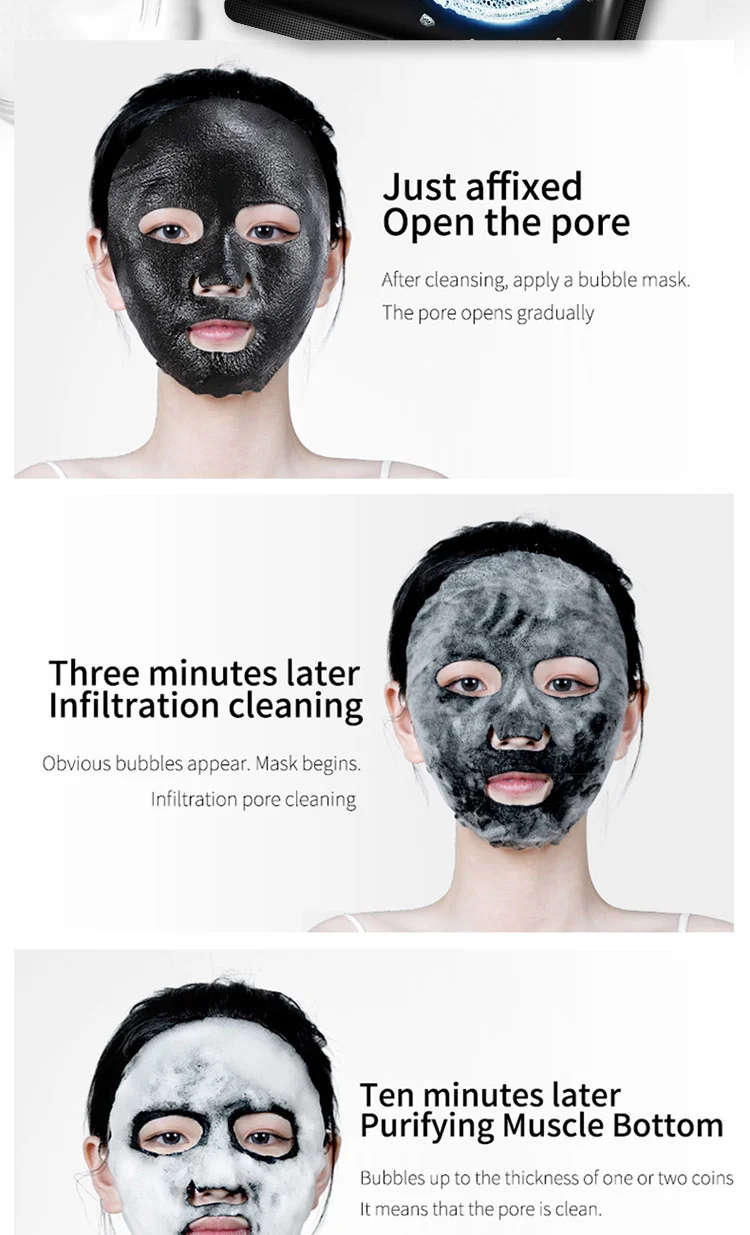 10pcs Black Sea Salt Moisturizing Bubble Facial Mask Deep Cleansing Oil Control Shrink Pore Skin Care Face Mask Black Masks