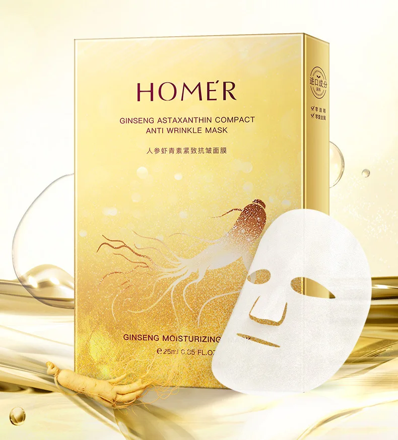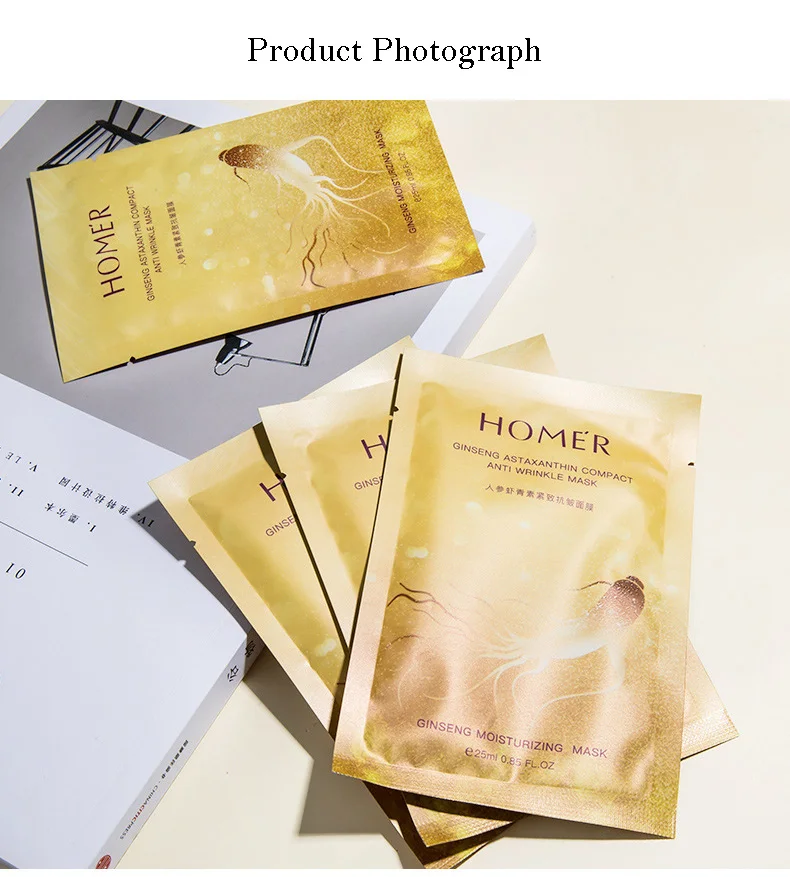 10pcs Ginseng Astaxanthin Facial Masks Skin Care Face Sheet Mask Moisturizing Anti-wrinkle Beauty Facial Mask Skin Care Products
