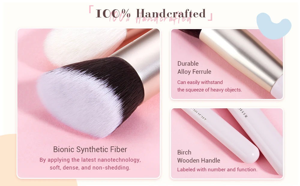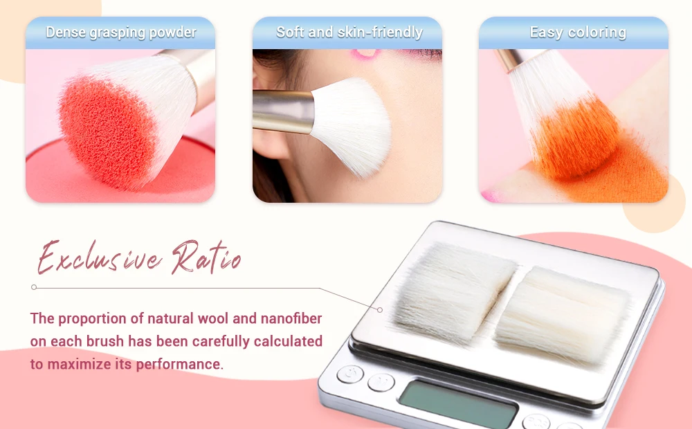 Smooth, fluffy, soft that makes you want to pet it all day long? Yes, that is literally the feeling of our natural-synthetic hairs, the mix of wool and nanofiber can bring you an incredibly comfortable feeling on your face as well as eyelids when applying makeup products. Besides, the bristles can be used on any skin type, even the most sensitive one, so please enjoy the softness of the bristles and use them in confidence!