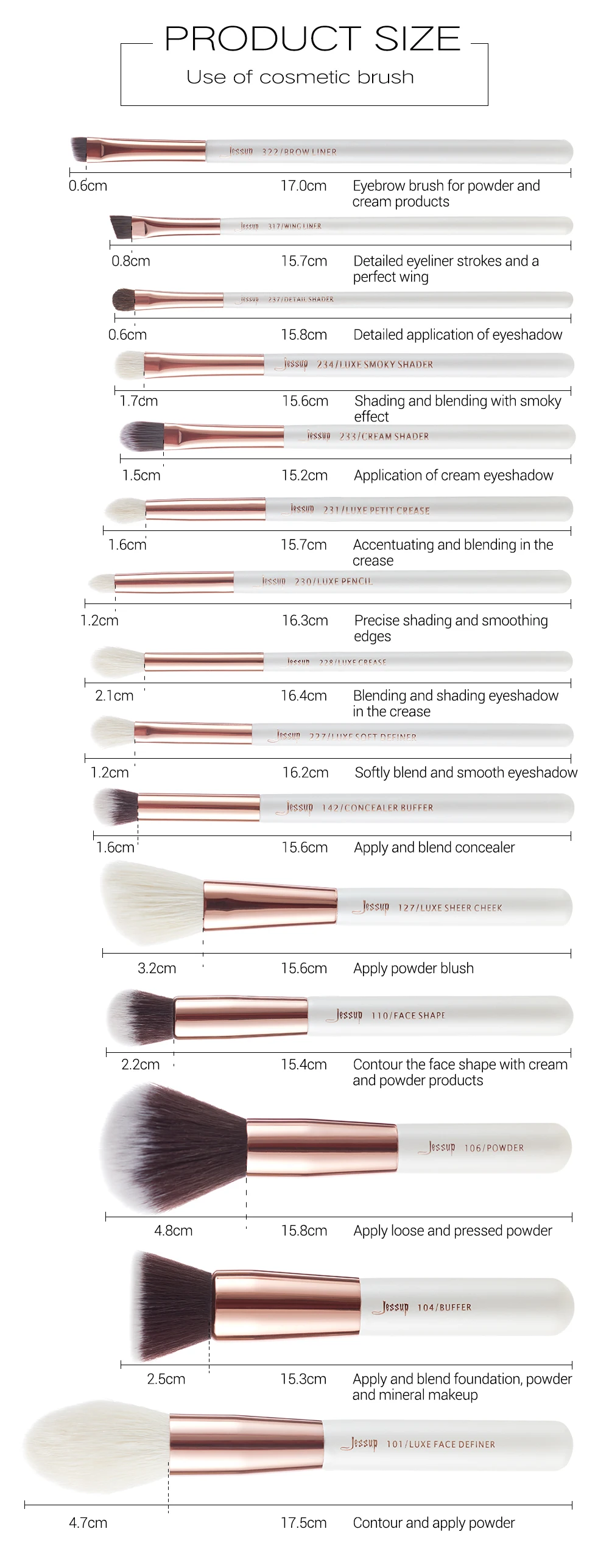 Noted: the package includes 15pcs Makeup Brushes set.