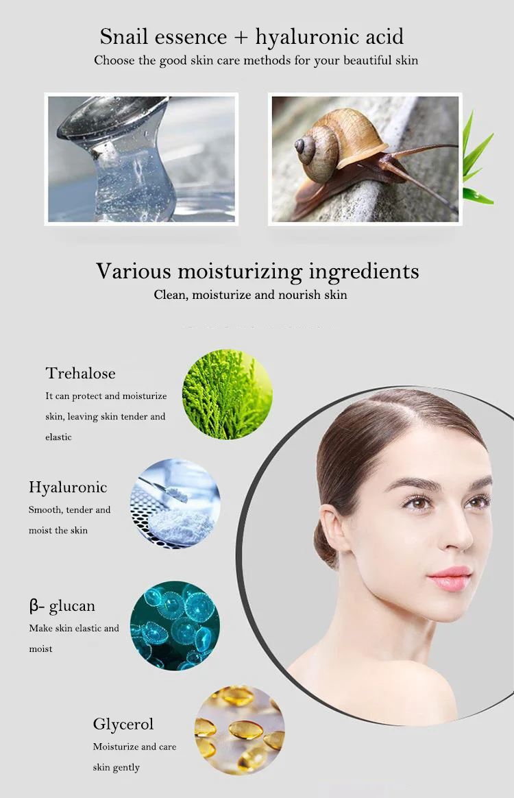 Ingredients: snail secretion filtrate, sodium hyaluronate, Glycerin, serine