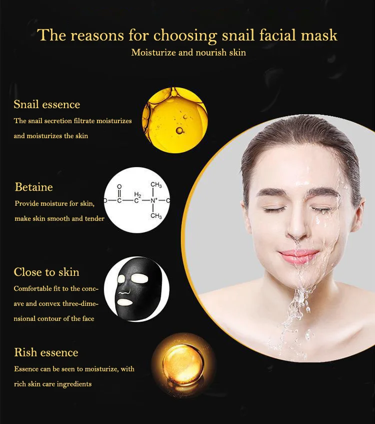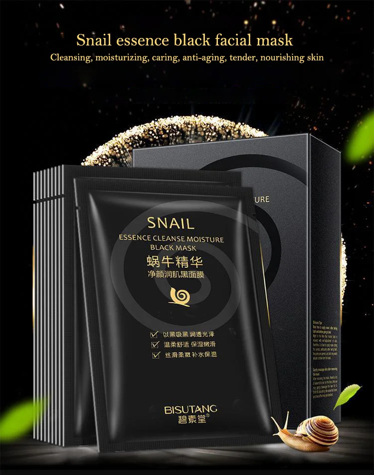 10pcs Snail Essence Black Facial Masks Face Sheet Mask Skincare Moisturizing Cleaning Pore Oil Control Skin Care Face Masks