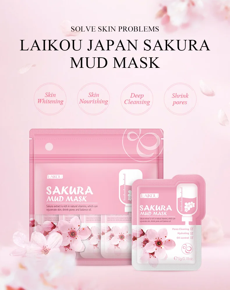60pcs LAIKOU Matcha Sakura Mud Masks Facial Moisturizing Deep Cleansing Hydrating Whitening Clay Face Mask Skin Care Products