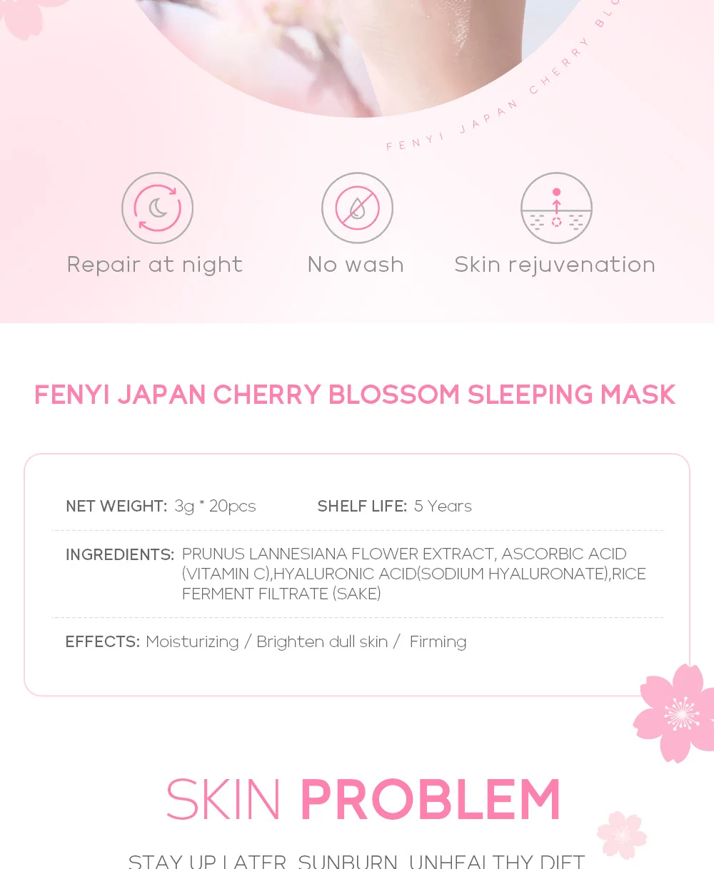 60pcs Sakura Sleeping Facial Masks skincare Moisturizing Hydrating Nourishing Face Mask for Beauty Facial Skin Care Products