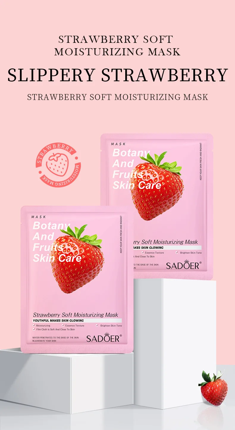 8 Pieces Strawberry Facial Mask Sheets Chamomile Pomegranate Cucumber Plant Fruit Masks for Oil Control Anti-wrinkle Anti-aging