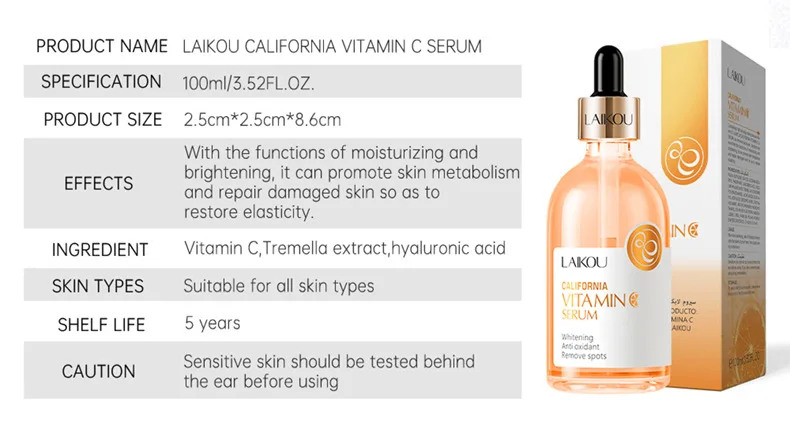 LAIKOU Vitamin C Essence 100ml Facial Moisturizing Hydrating Anti-Aging Anti Wrinkle Face Serum Facial Skin Care Products