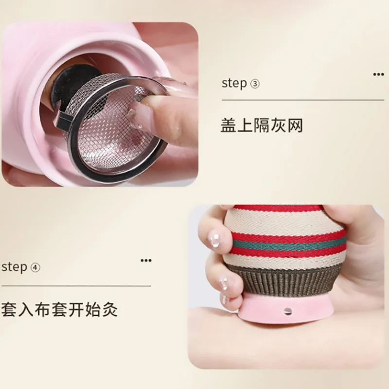 Ceramic Moxibustion Cup Wormwood Stick Burner Gua sha Hot Compress Moxa Care Therapy Hand Hold Warm Meridian Acupoint Massager