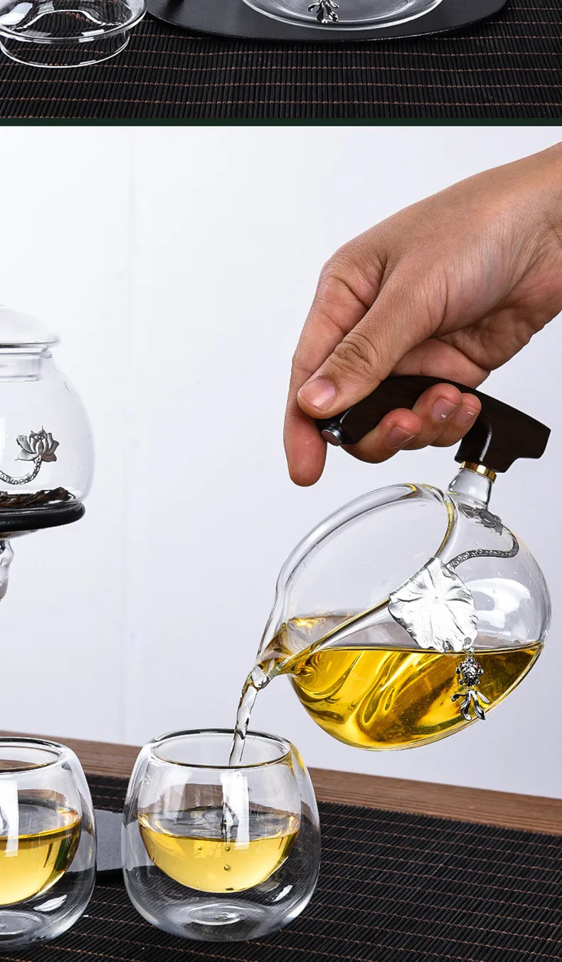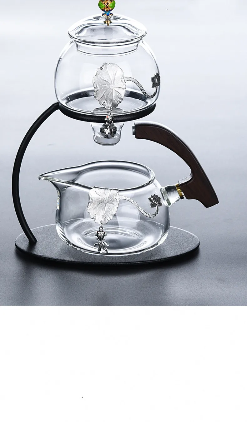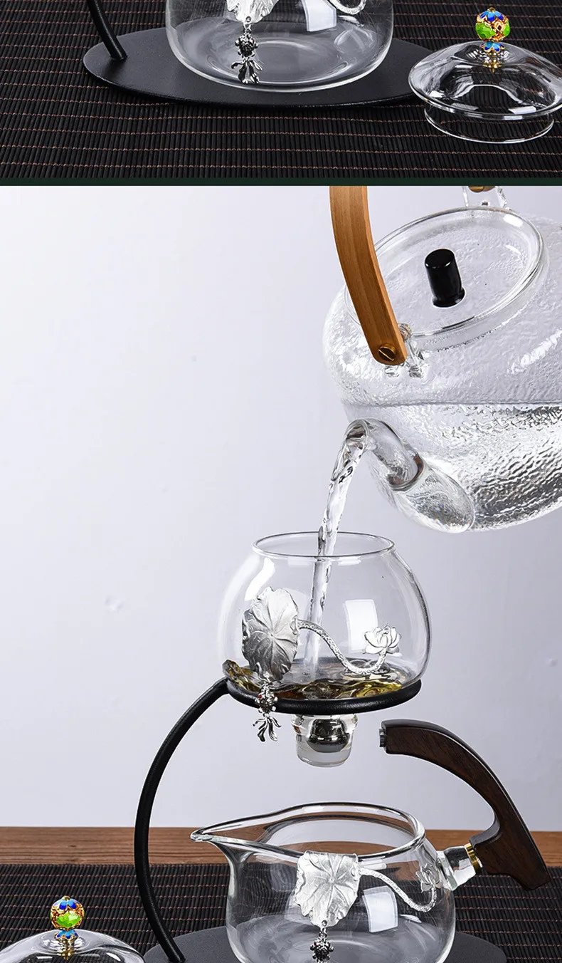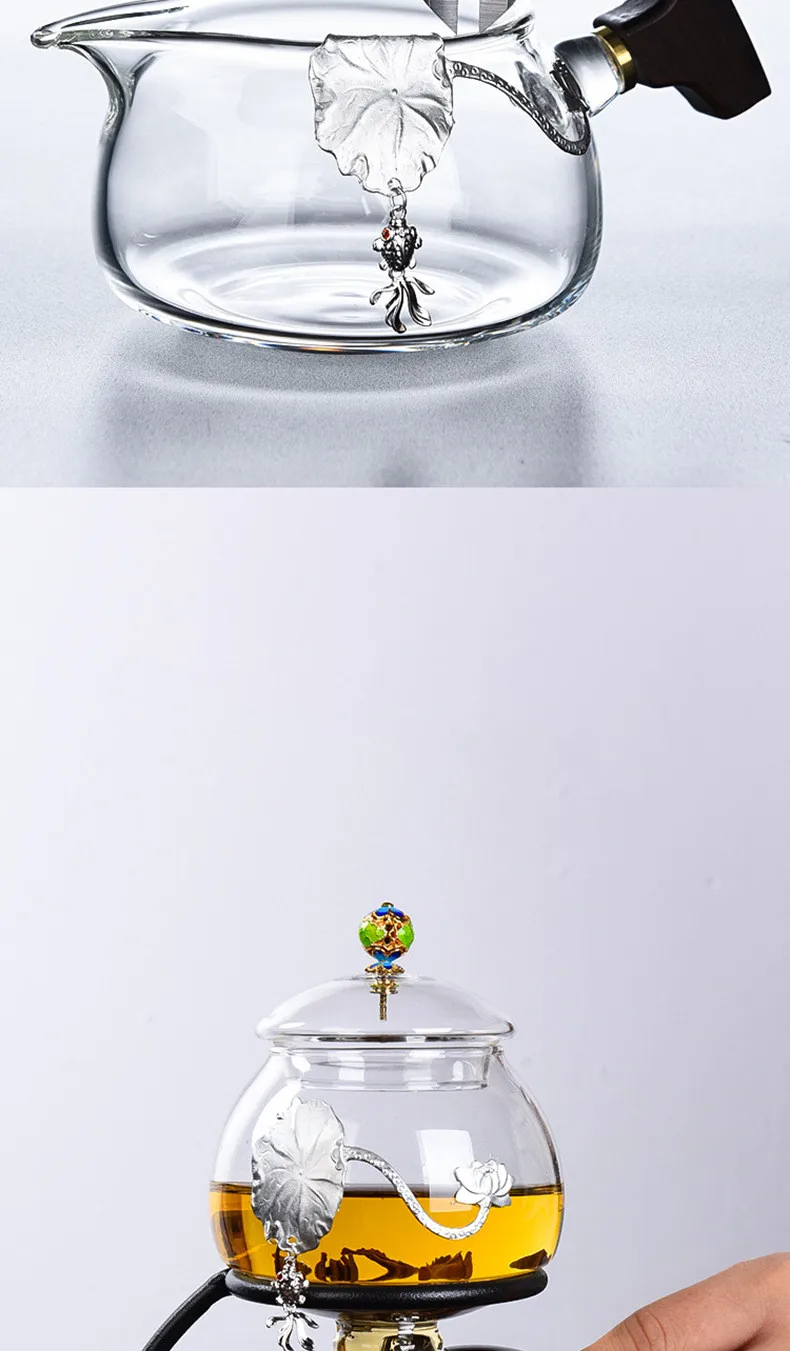 Creative Silver Inlaid Semi-automatic Tea Set Heat-resistant Glass Kung Fu Tea Set Teapot Teacup