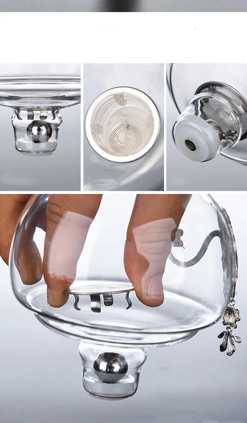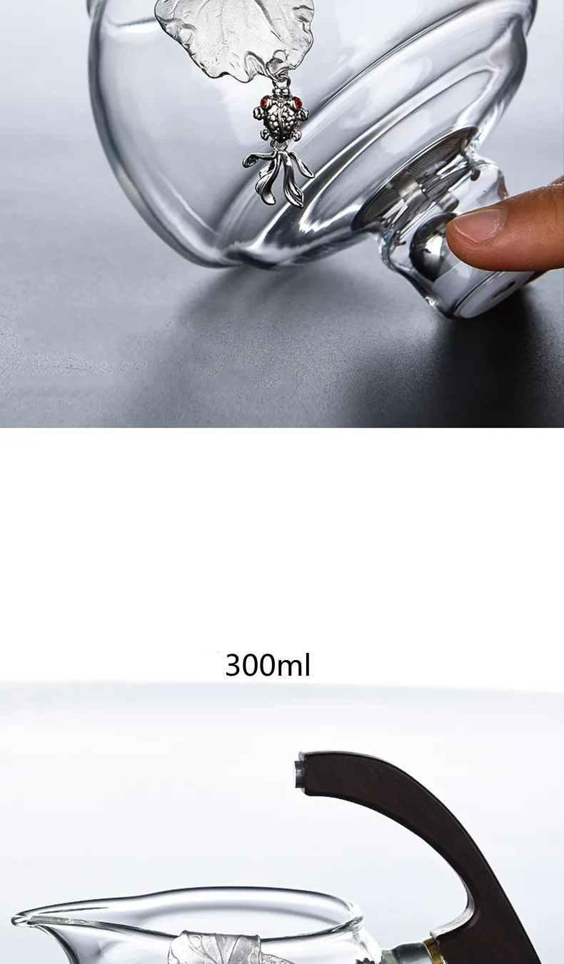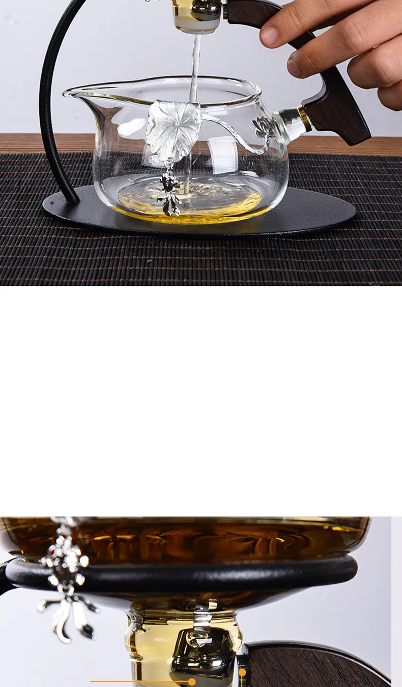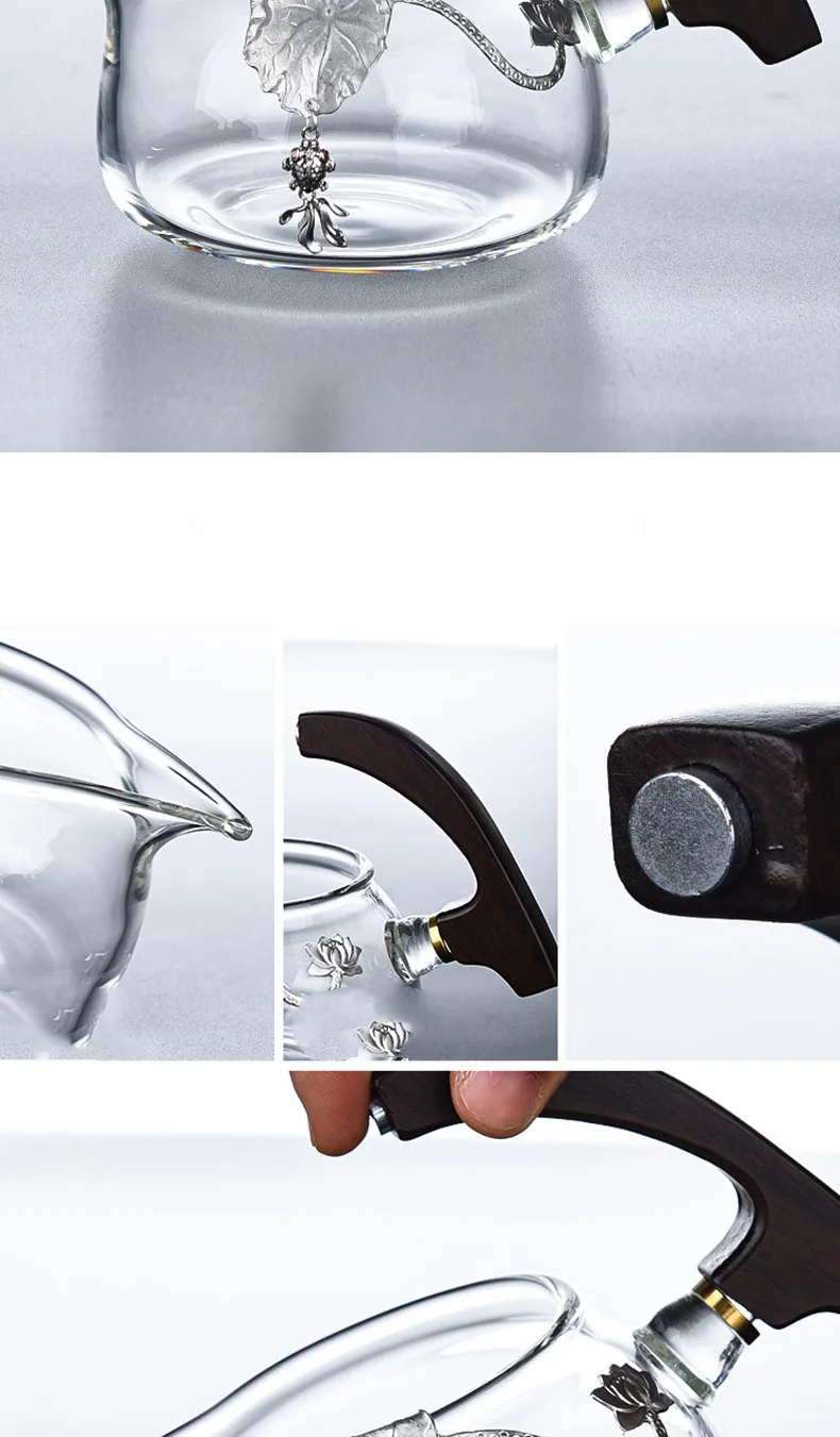 Creative Silver Inlaid Semi-automatic Tea Set Heat-resistant Glass Kung Fu Tea Set Teapot Teacup