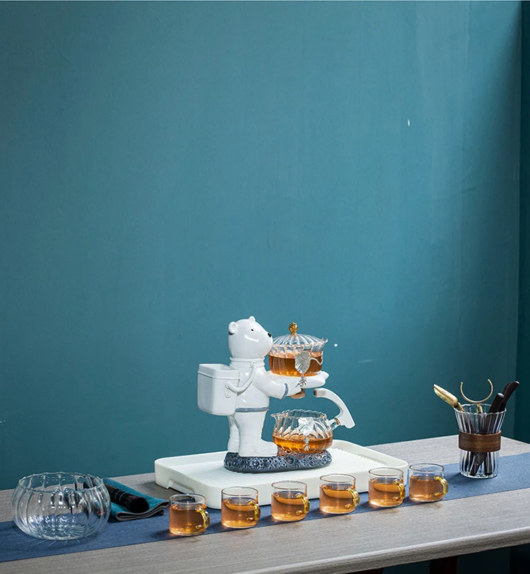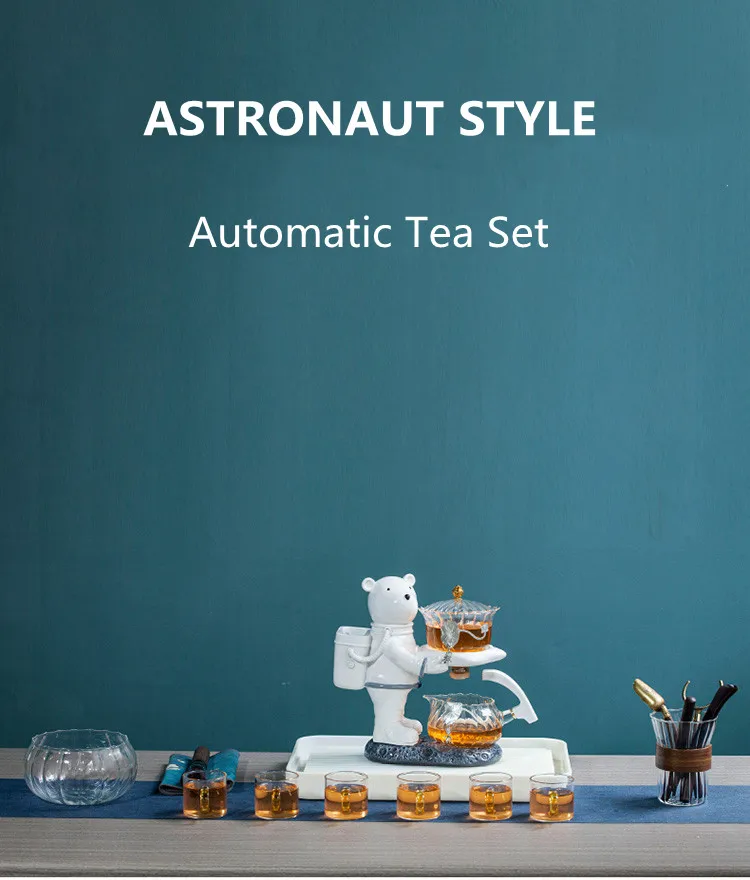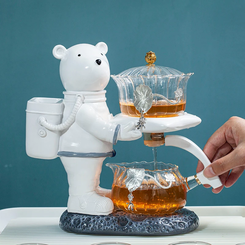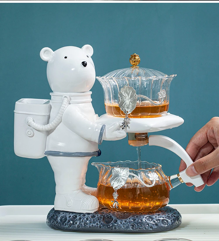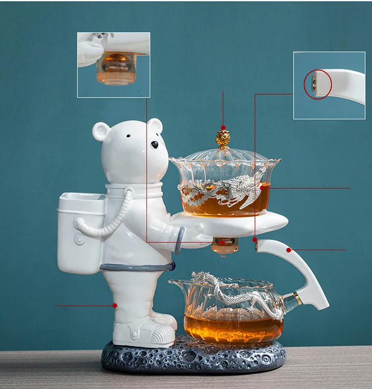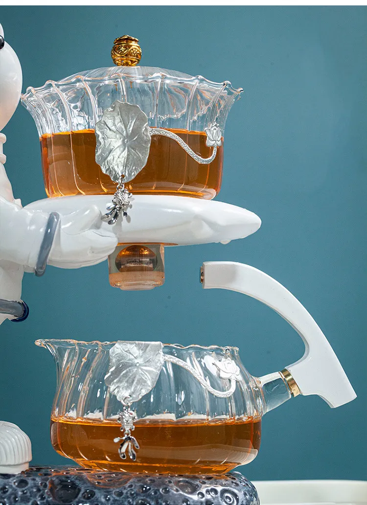 Astronaut Tea Making Artifact Kungfu Teapot Teacup Automatic Tea Set Heat-resistant Glass Teapot Holder Base