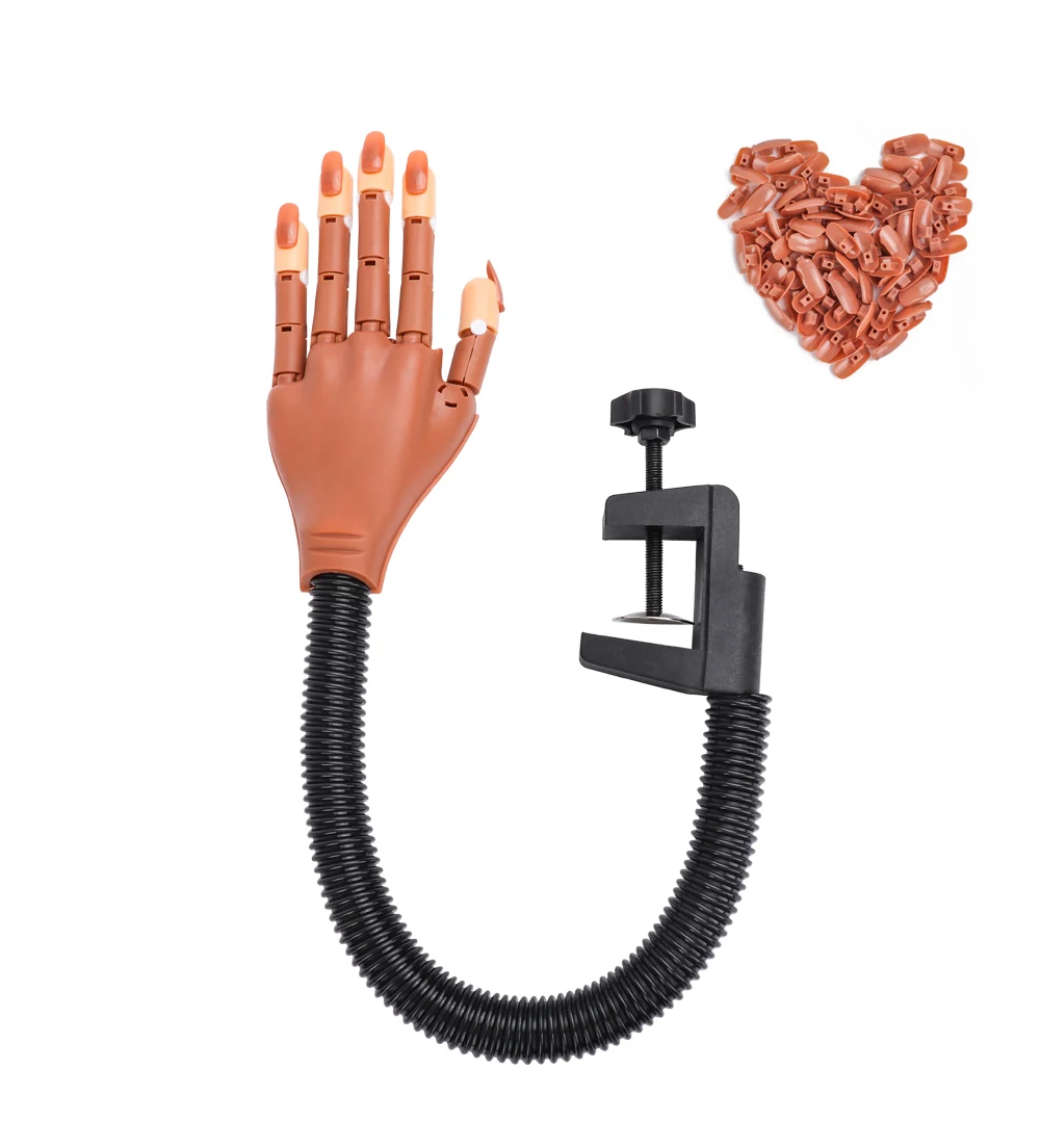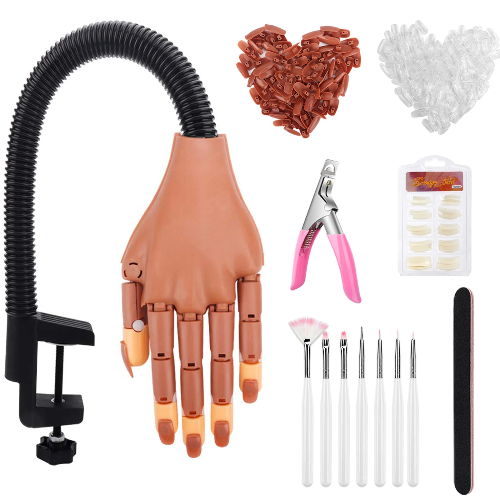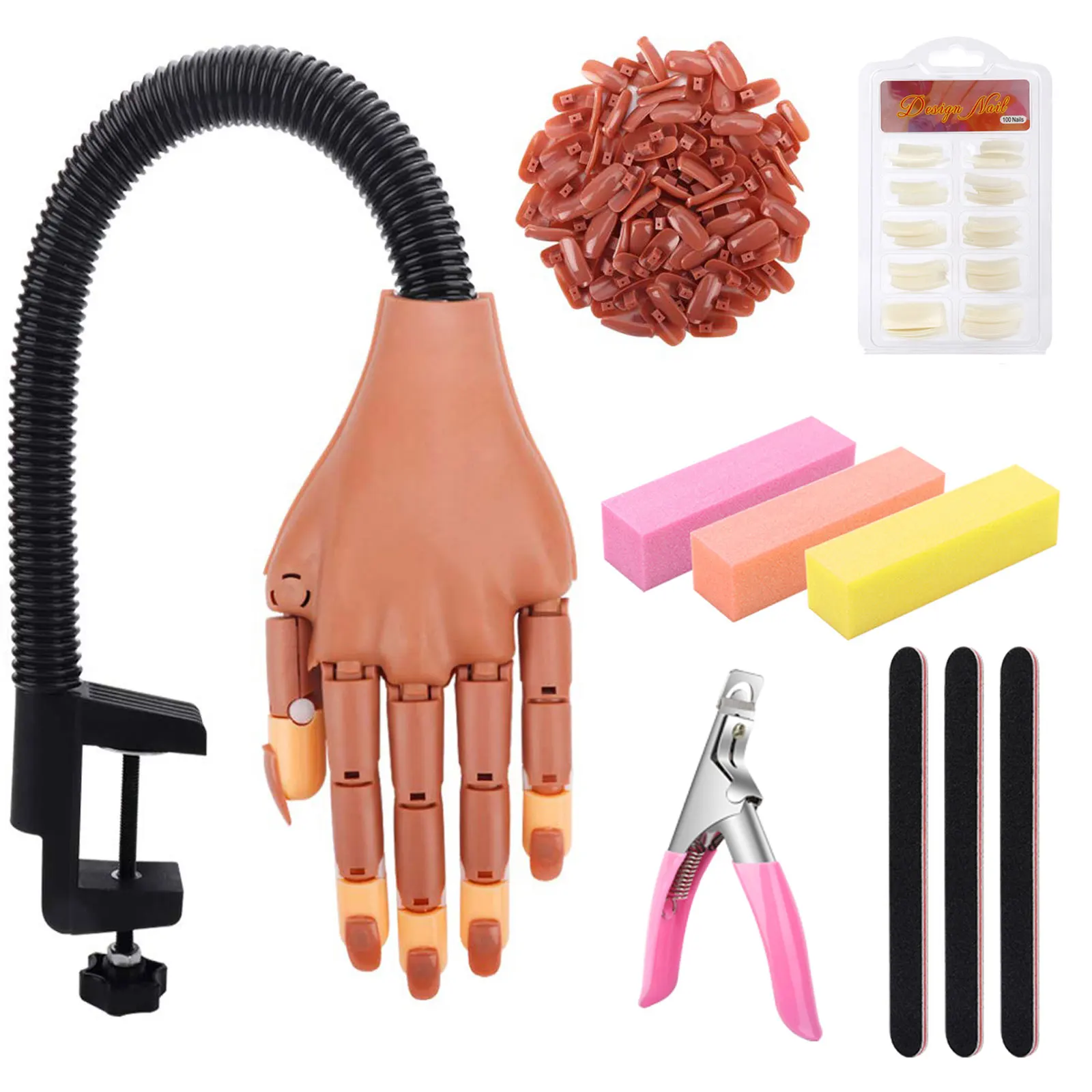Nail Art Practice Equipment with 100pc False Nails Adjustable Flexible Manicure Training Prosthetic Hand Nail Art False Hand Set